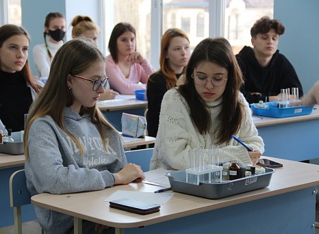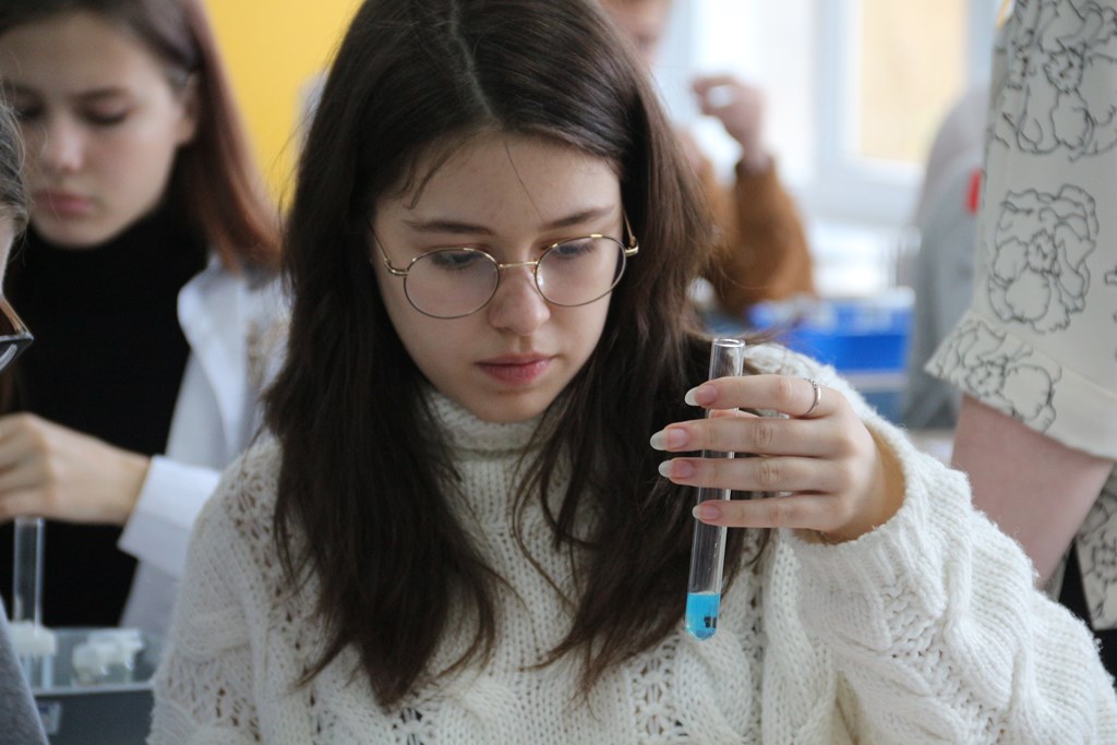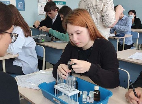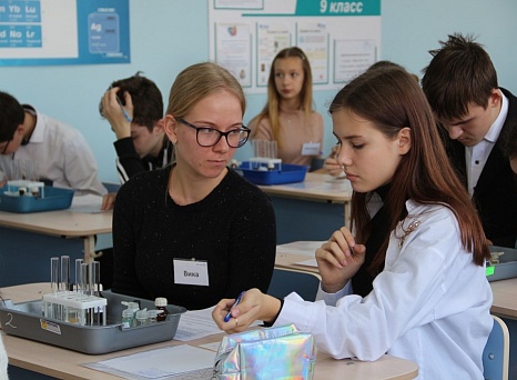 В ходе открытого занятия в профильном кабинете ребята выполнили одно из заданий практической части ОГЭ по химии. Стоит отметить, что в этом году впервые в экзамен включена практическая работа.