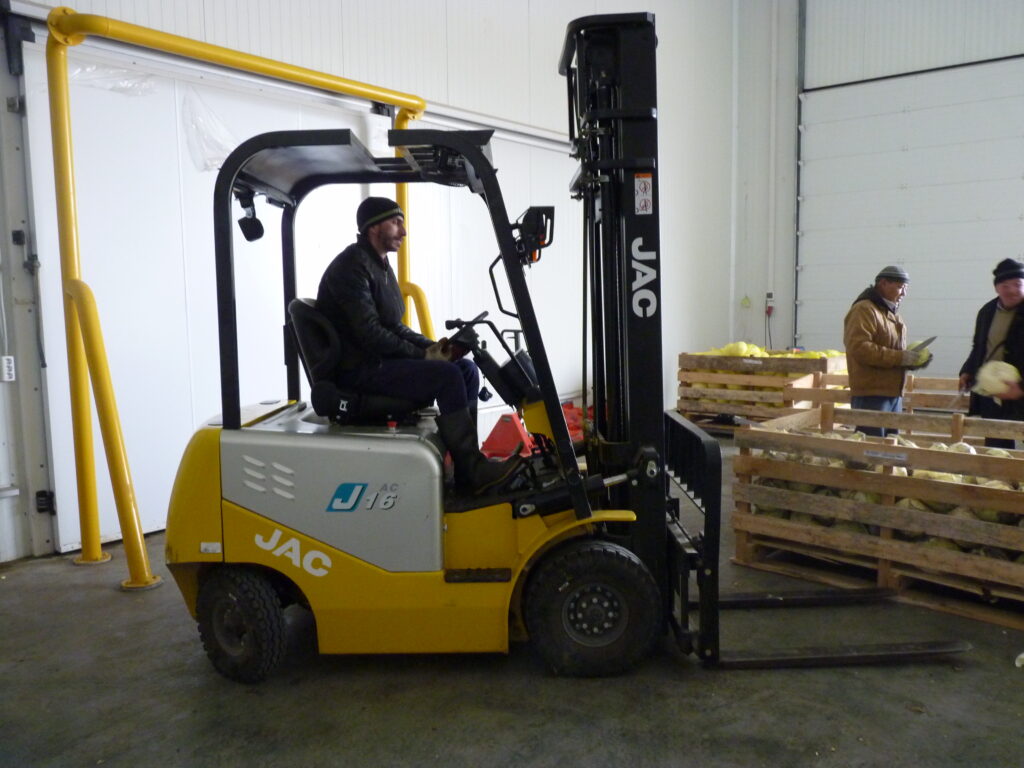 В овощехранилище также два охлаждаемых склада, которые вмещают продукцию на 500 тонн. Некоторые фермеры уже сдали на хранение капусту и тыкву. Зимний сорт капусты можно хранить 2-3 месяца. Рабочие подготавливают капусту для оптовых покупателей.